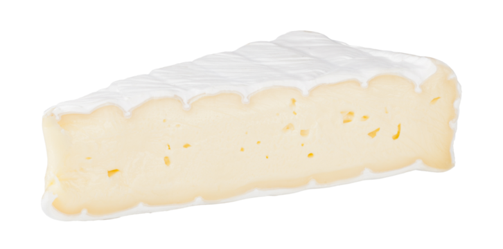 Collection of various A round of brie cheese with a slice taken out, highlighting its soft, creamy texture and white edible rind isolated on white transparent background PNG set