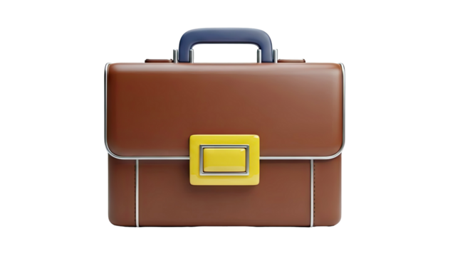 Elegant brown leather briefcase with metal clasp isolated on transparent background for business and professional themes