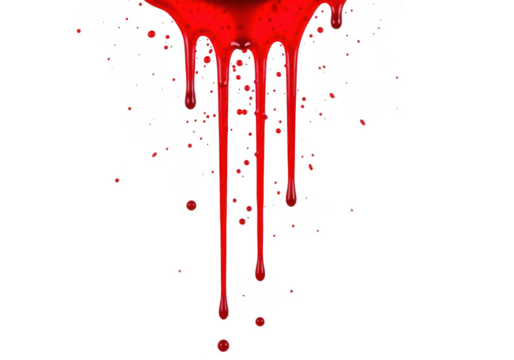 Vivid red liquid dripping and splashing with messy, dangerous aesthetic isolated on transparent background
