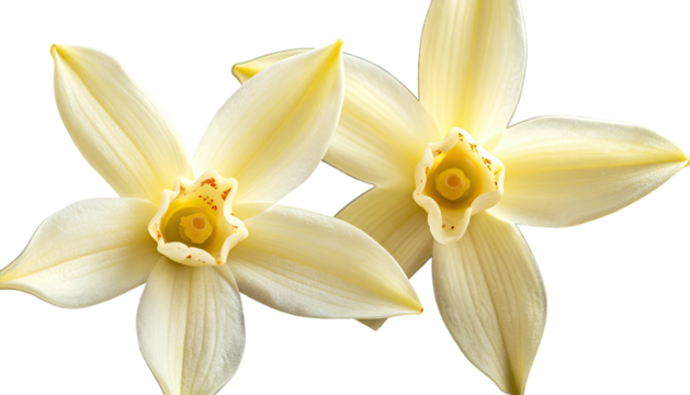 Two vibrant purple and blue lilies with glistening water droplets isolated on transparent background