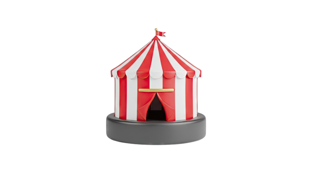 3D Render of a Red and White Striped Circus Tent with Flag