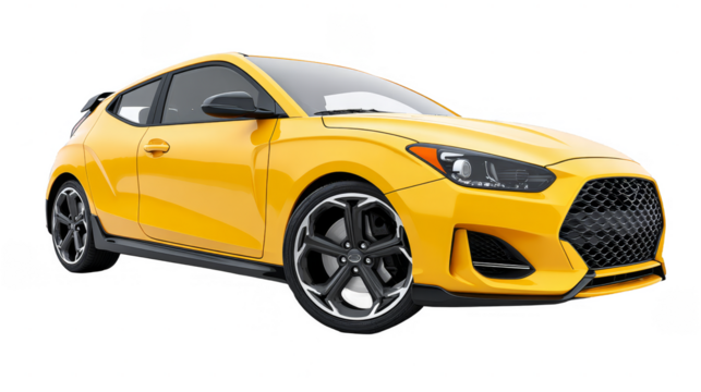 A yellow sporty car with a modern design, featuring sleek lines and stylish wheels, representing automotive technology and speed.
