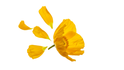 A bright yellow poppy flower with delicate petals on a clean white background viewed from directly above