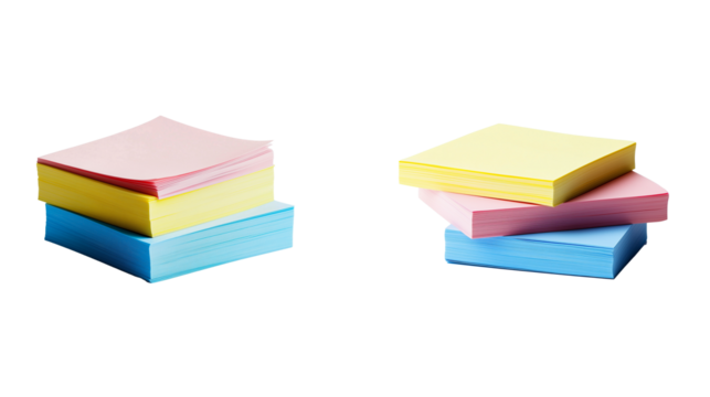 Colorful sticky notes stack for office supplies and school supplies organization idea on transparent background