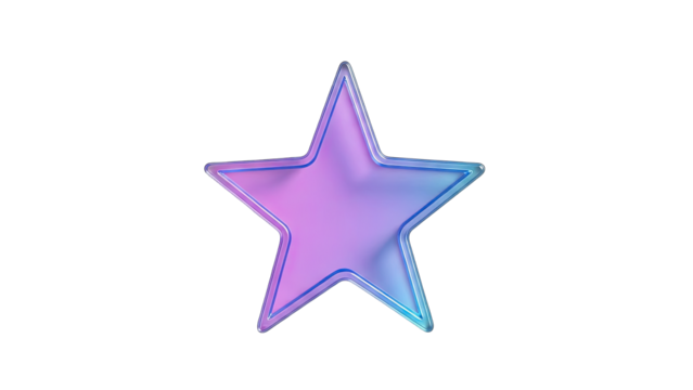 3D Star shape with pink and blue gradient outline on transparent background