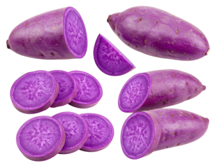 Purple Sweet Potatoes Isolated on Transparent or White Background