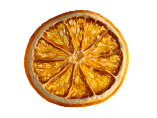 Single Dried Orange Slice on Transparent Background , Vibrant Textured Natural Fruit with Detailed Rind, Pulp, and Translucent Finish