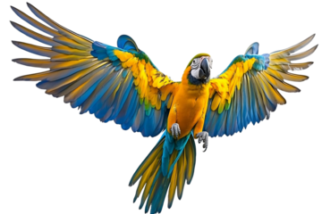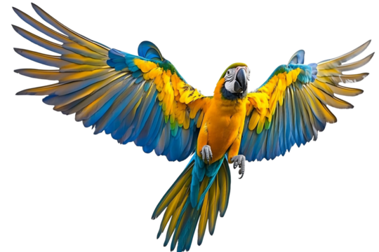 Blue and Yellow Macaw Parrot Isolated on Transparent Background