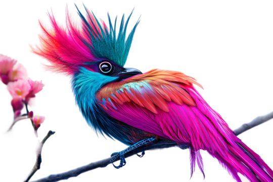 Bright and colorful hyper vibrant bird isolated on transparent background