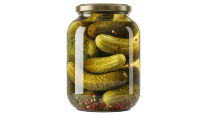 Canned Whole Pickled Cucumber or Gherkin Preserved with Brine in Glass Jar Vector Illustration