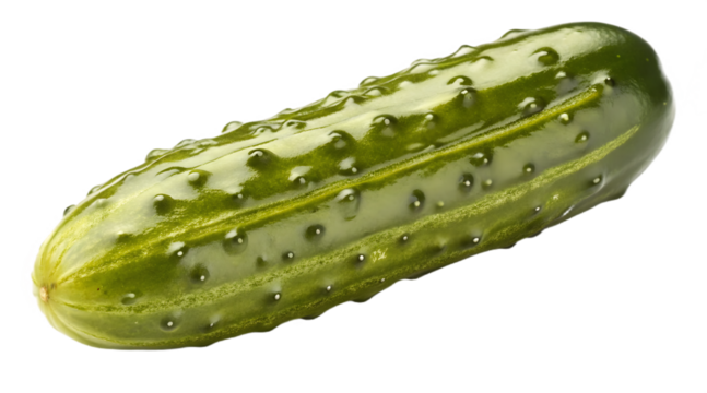 Fresh green pickles cucumbers isolated on white transparent background. Concept of healthy eating