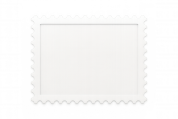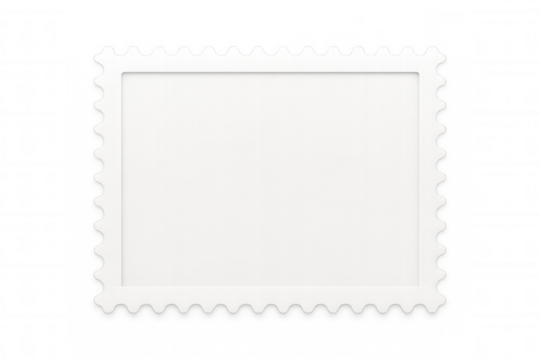 White empty postage stamp with serrated edge isolated on transparent background, ideal for adding your own design or text
