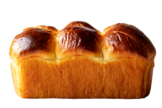 Golden brown brioche bread loaf with glossy egg wash finish isolated on white background