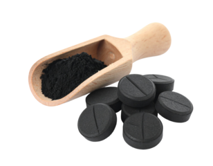 Charcoal blocks and powder pile creating a heating and grilling fuel concept on transparent background