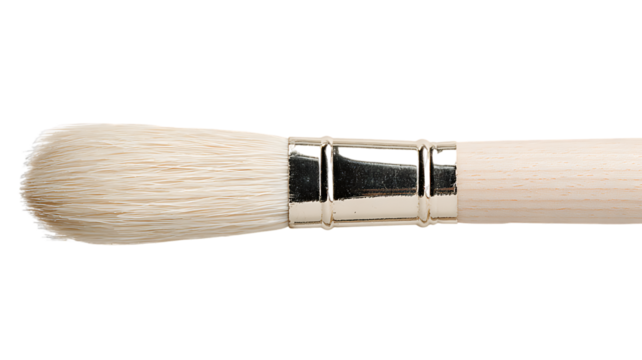 Close up studio shot of an artistic paintbrush with natural bristles and wooden handle  on transparent background