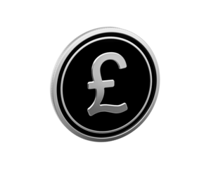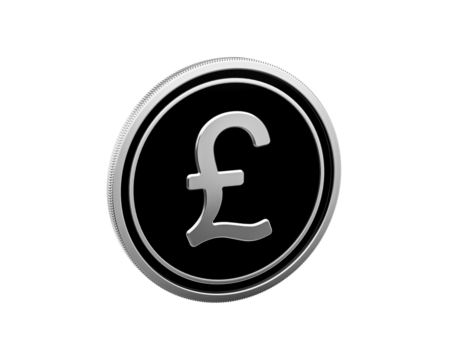 Sterling silver coin depicting the British Pound symbol, finance concept.
