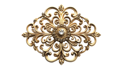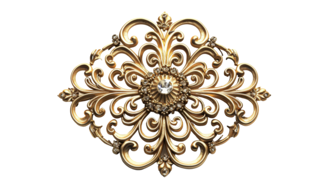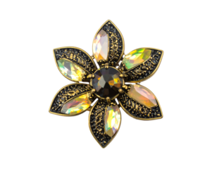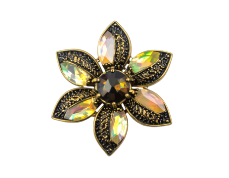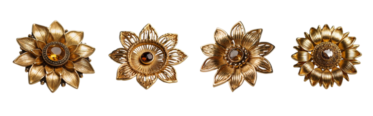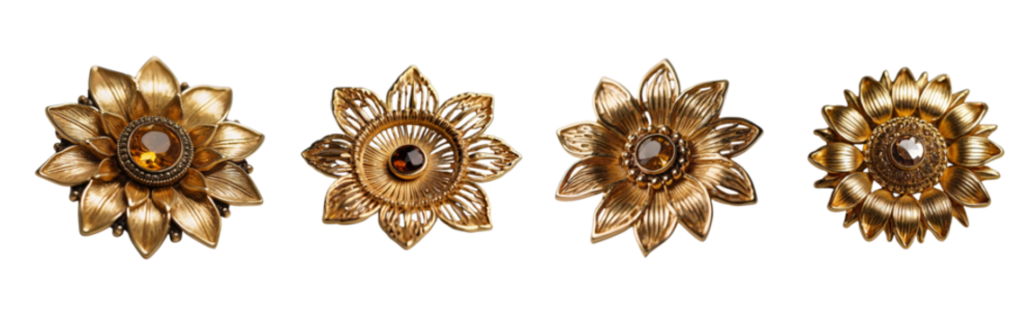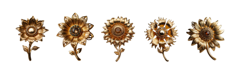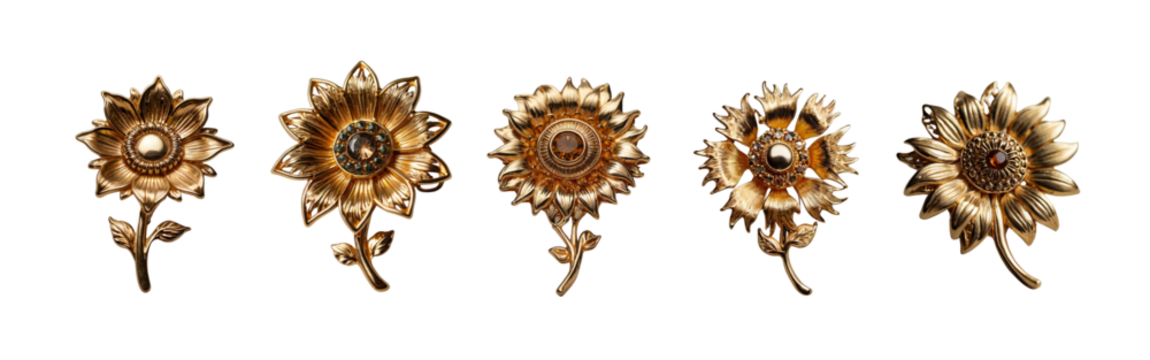 4 Old fashioned sunflower brooch made of gold with intricate design set against a transparent background