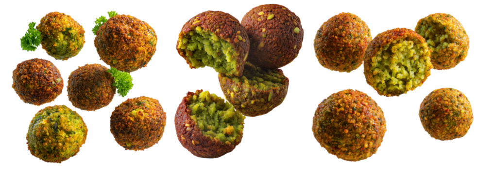 Set of Taameya Egyptian falafel balls made from chickpeas or fava beans, isolated on white background, concept of Arabic food