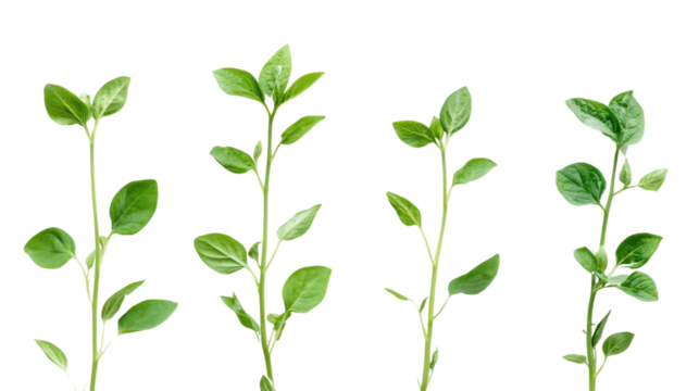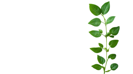 Studio shot of a fava bean plant with stem and leaves isolated on white background