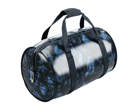 Durable black duffel bag with adjustable straps and multiple pockets for travel