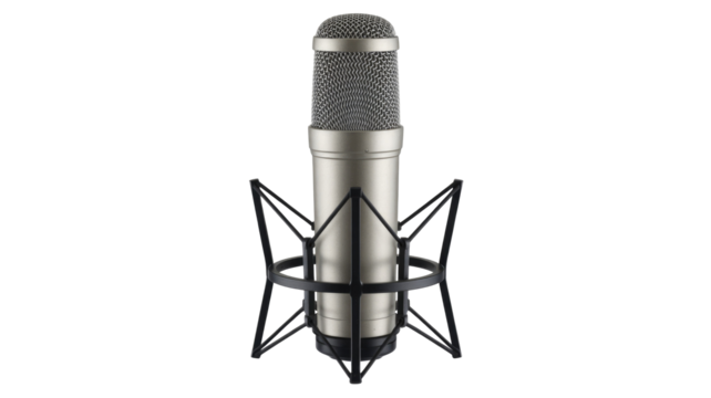 A white and blue megaphone ready for broadcasting important messages and making announcements isolated on transparent background