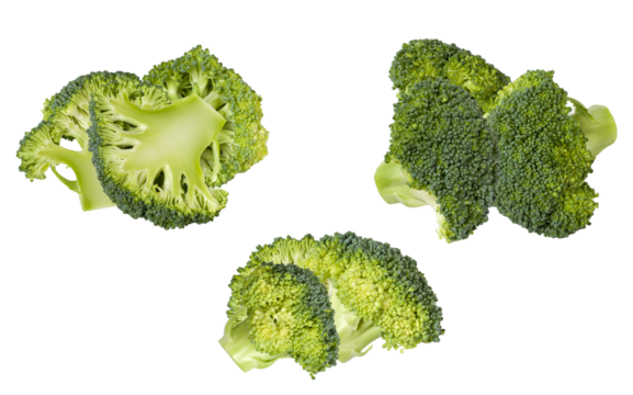 broccoli florets on transparent background, isolated