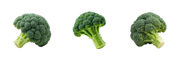 Three broccoli florets isolated on transparent background