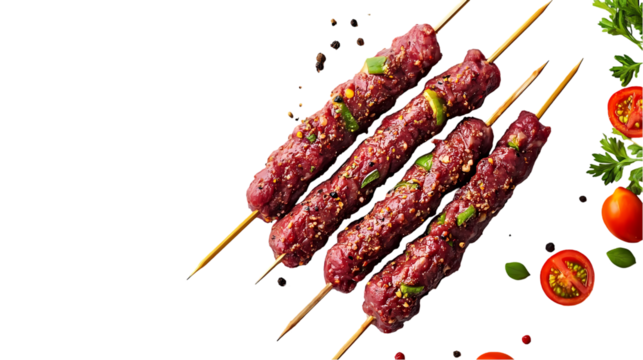 A top view of raw kebabs isolated on transparent background
