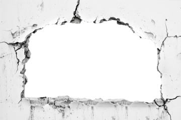 Gray Concrete Crack 3D Wall Texture, Rough Grunge Design with Stone Holes, isolated on transparent background.