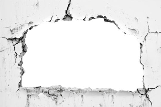 Concrete wall frame. Concrete hole as frame. PNG file. Generative AI