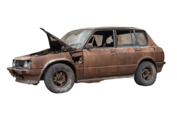 old damaged rusty car isolated on transparent background