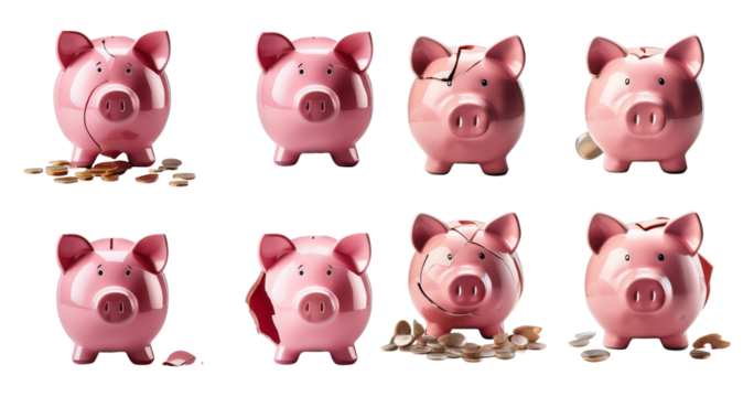Collection of Piggy Banks Showing Savings and Financial Concepts, Bundle Set Collection, Isolated on Transparent Background