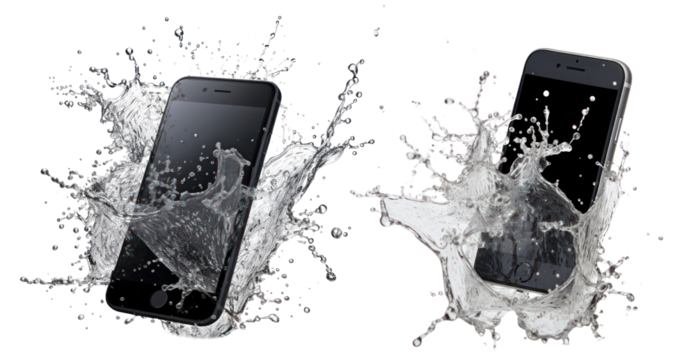Mobile phone with splash water png on transparent background
