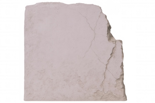 Close-up of a broken concrete slab with visible cracks and damage, isolated on a transparent background, perfect for compositing and design projects