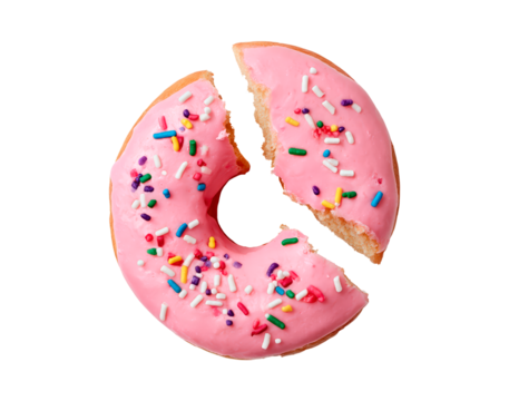 Delicious chocolate glazed donut with white icing drizzle isolated on transparent background