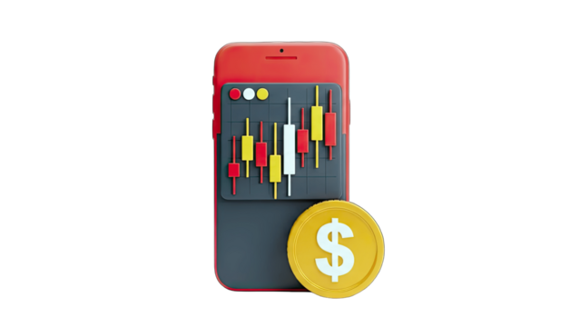 Smartphone with Stock Chart and Dollar Coin - Financial Technology Concept