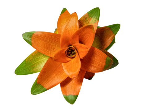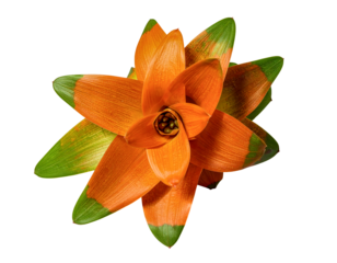 Orange bromeliad flower petals blossom tropical plant close up isolated on transparent background