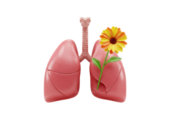 Isolated lungs with flower inserted, a symbol of healthy lungs, natural and herbal care