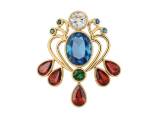 Gemstone Brooch with Gold Setting on transparent background