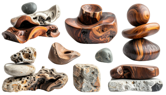 Miniature grey mountain landscape sculpture on flat tray isolated on transparent background