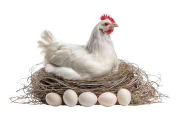 PNG White hen sitting on nest with eggs