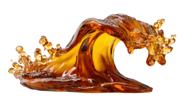Liquid Wave: A photorealistic wave of amber liquid crashes, its form captured in mid-motion. Showcasing the elegance of fluid dynamics and the beauty of abstract shapes.