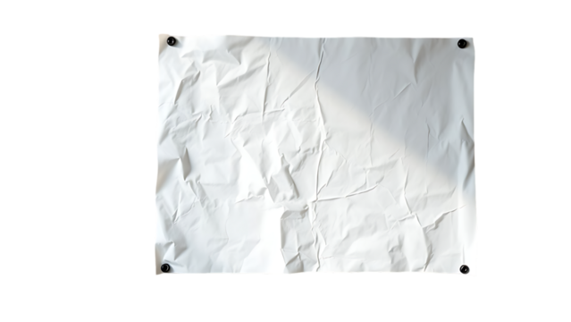 White paper rumpled poster template blank glued creased paper sheet blank mockup white wrinkled post