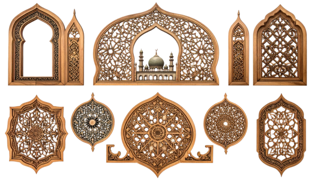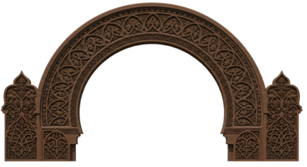 Isolated Transparent Ornate Arch with Carved Stone and Brown Details