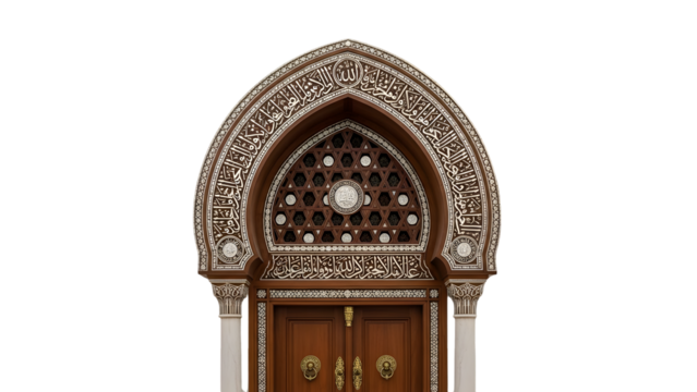 Isolated Moroccan Archway Carved Stone Arabic Islamic Doorway PNG