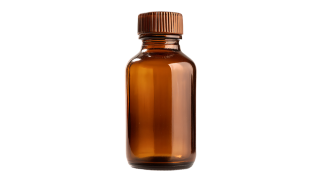 Hazardous chemical in a brown bottle with transparent background