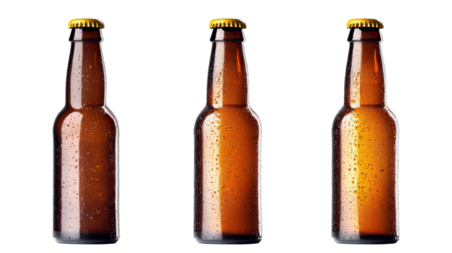 Brown bottle of beer, isolated on transparent background