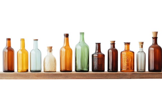 Vintage Glass Bottles with Cork Stoppers Isolated on Transparent Background