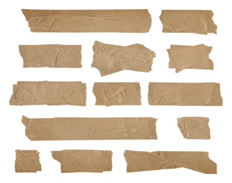 four pieces / strips of brown textured adhesive kraft paper tape, attach something or use as labels and add some text - isolated design element