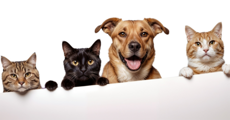 Adorable cat and dog surrounded by autumn leaves on transparent background